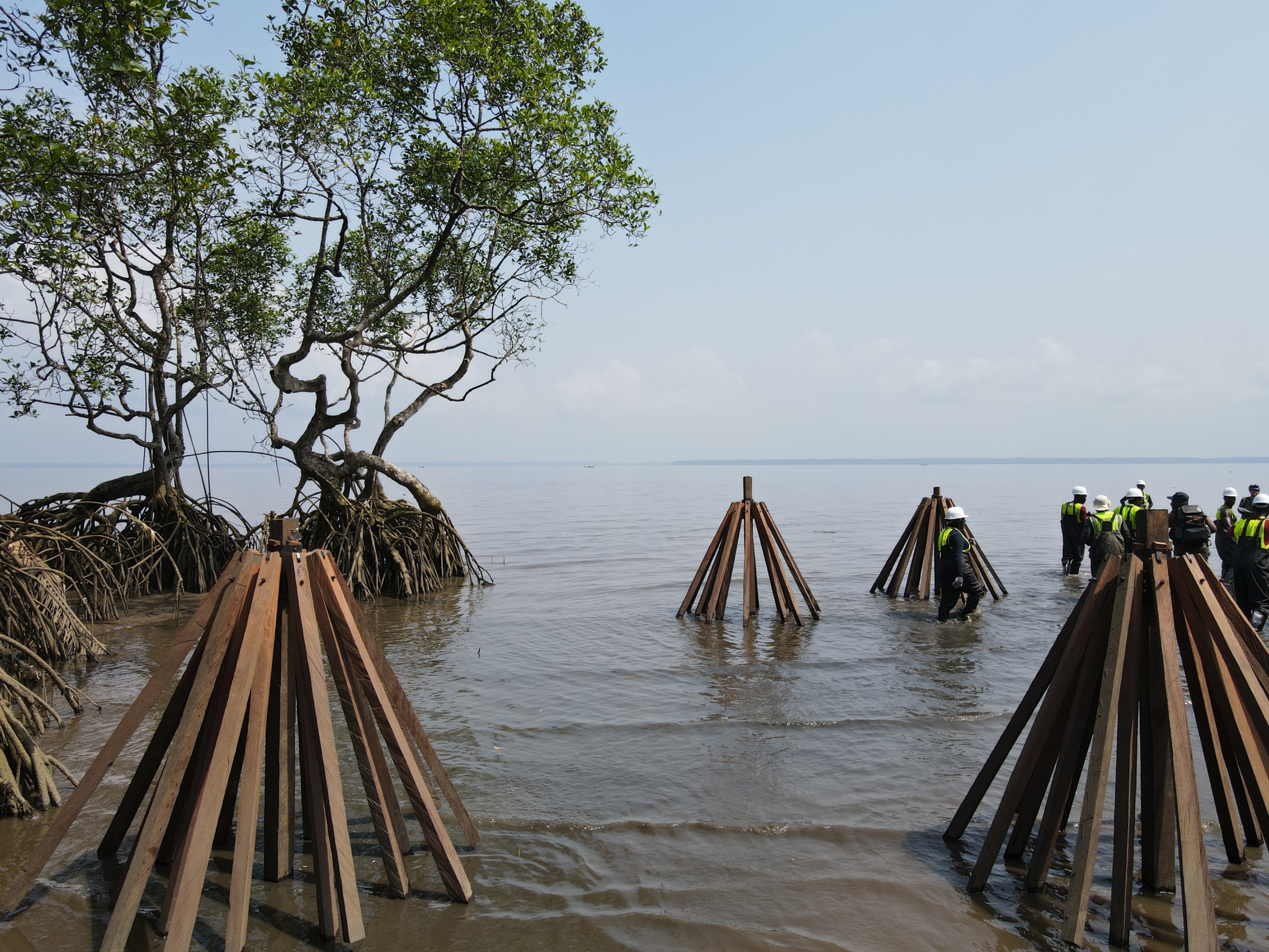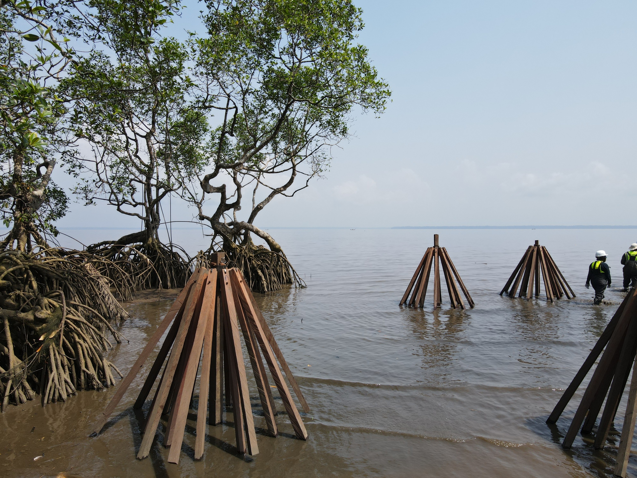 Cette approche s’inspire des mécanismes naturels pour restaurer les écosystèmes côtiers. Le projet vise à réduire la vitesse des vagues et à favoriser la rétention des sédiments, créant ainsi des conditions écologiques propices à l’installation et à la régénération naturelle des propagules de mangrove.